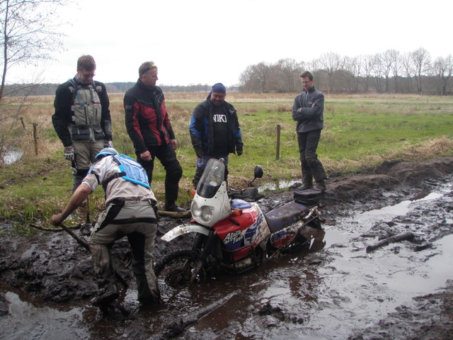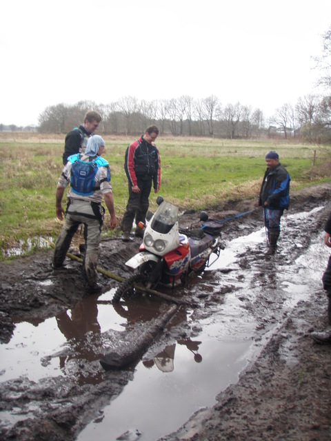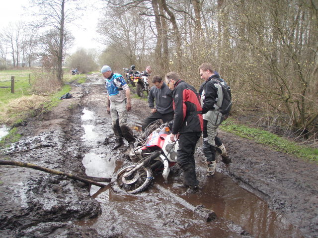 Annelies, ik zou het wel heel raar gevonden hebben wanneer de heren jou de modder in zouden hebben gestuurd om die motor los te trekken, voel je vooral niet schuldig want als ik dat zo zie is het bepaald geen girls ''business'' , sodeju!
