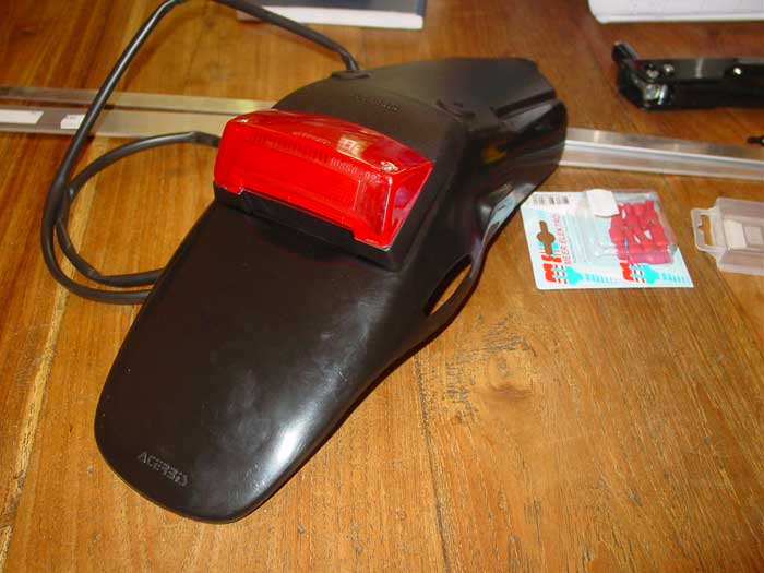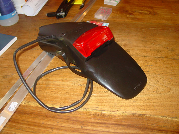 Het bagage rekje had ik er ook al afgehaald maar ik was nog niet tevreden over de kont van mevrouw. Gister even in Zaandam een Acerbis achterspatbord/lichtunit geval gehaald. Die moet er nog op maar ik heb alvast eea bij elkaar gescharreld :)