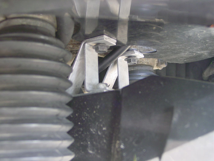 Die zit vast aan het onderste kroonstuk met twee zelfgefabriceerde aluminium beugeltjes: