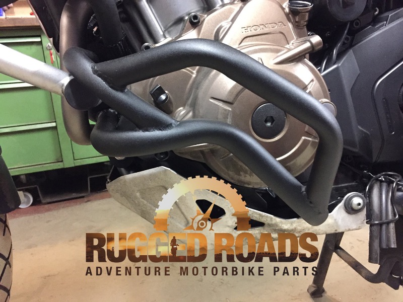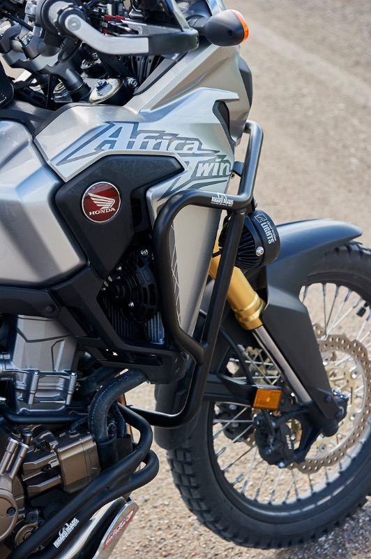 De beugels van Hepco beschermen de motor wel.