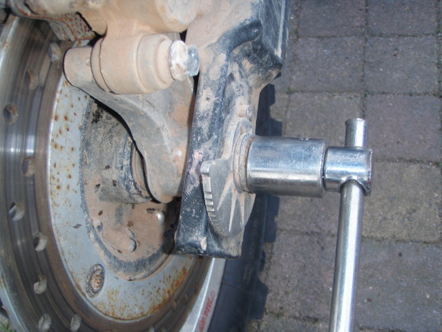 Vandaag wilde ik in ieder geval achterwiel verwijderen en de band vervangen zodat deze op de andere twin geplaatst kon worden en de Desert band die op de andere zit verder bewaard kan blijven voor de Turkije rally in september.