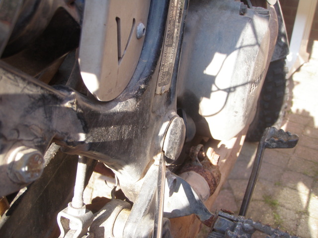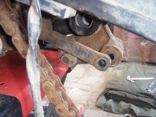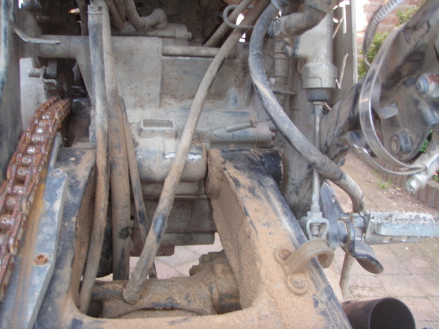 Vervolgens heb ik de ketting en voortandwiel, en de linker step verwijderd. (Voor wie nog foto's wil zien, www.storeitonline.eu/rob/motor/zwarte-rebuild/ ). Linker step omdat ik ook even de jiffie onder handen wil nemen en ik kan er makkelijker bij als de hele step verwijderd is.