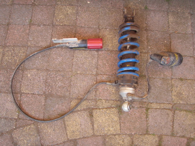 Eerst maar eens de achterdemper naar de verenboer gebracht. Kan wel een paar weken duren voordat ie terug komt maar goed, we wachten rustig af. Denk dat als deze terug is, ik die onder de andere twin ga zetten en dan de andere demper ook even voor een revisie langs ga brengen.