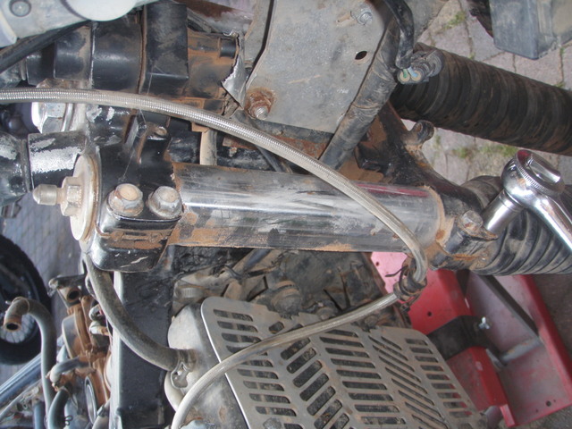 Eerst zaak om de achterdemper/veer te verwijderen zodat die voor een revisie naar de 'veren'boer kan.