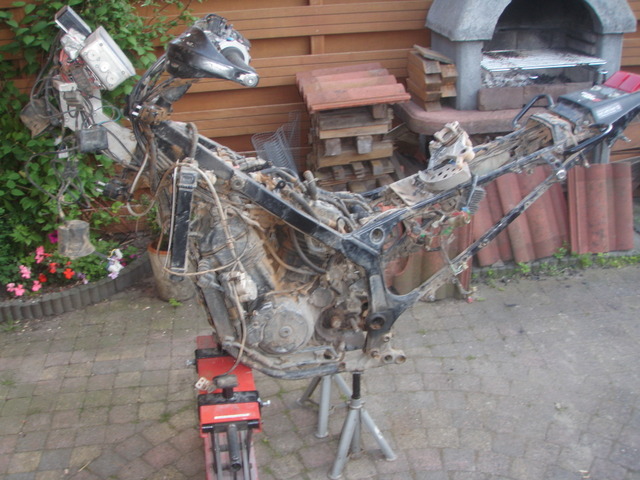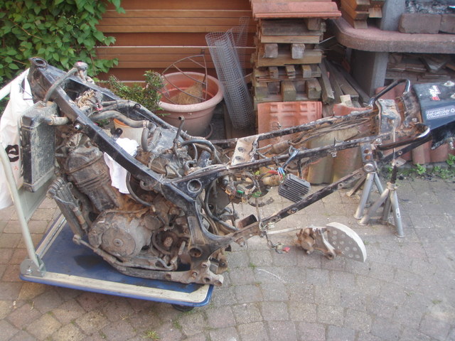 En ja, er zijn al wat dingen verwijderd zoals de uitlaat (wordt later ook wel duidelijk waarom), valbeugels e.d.