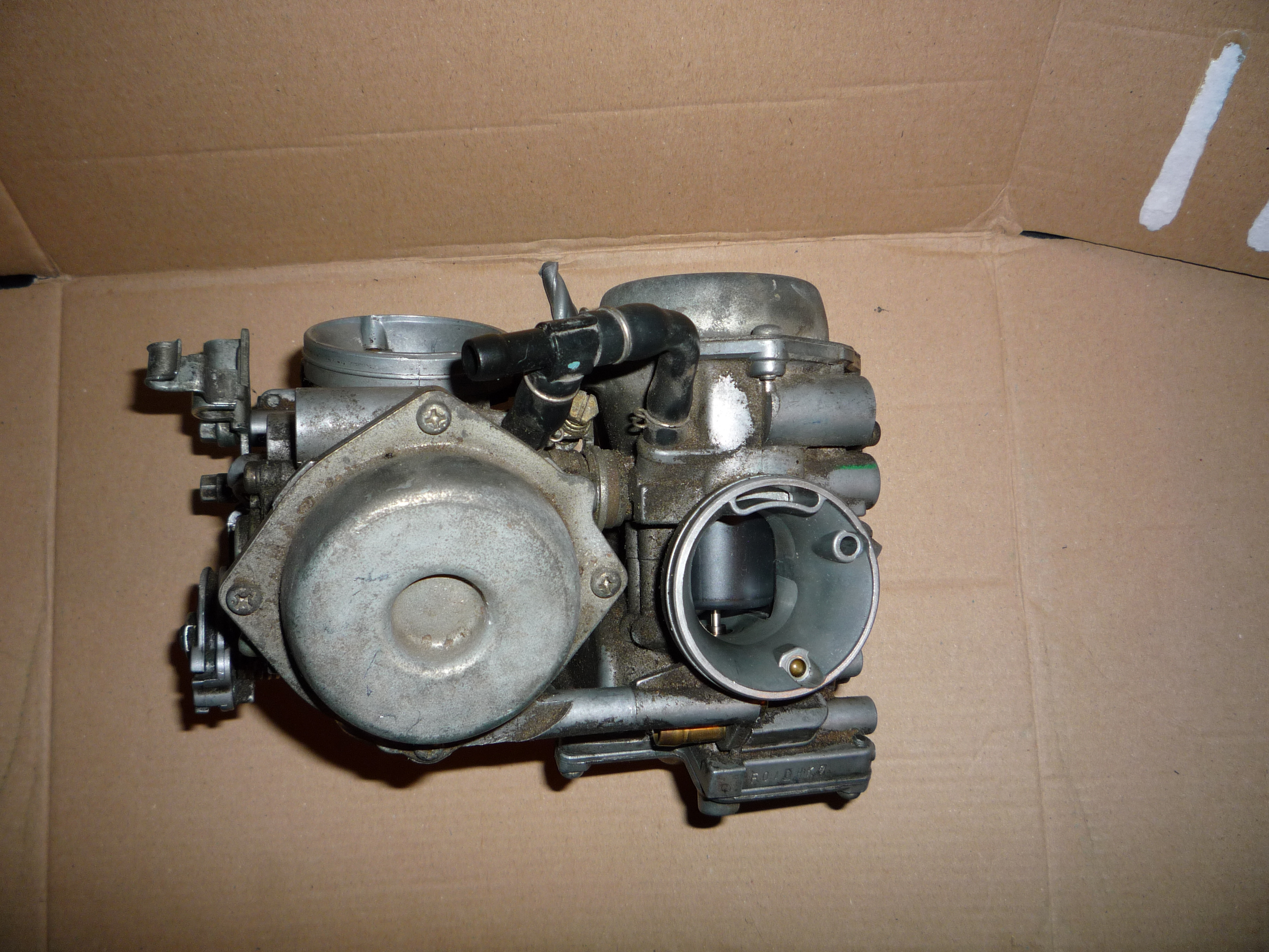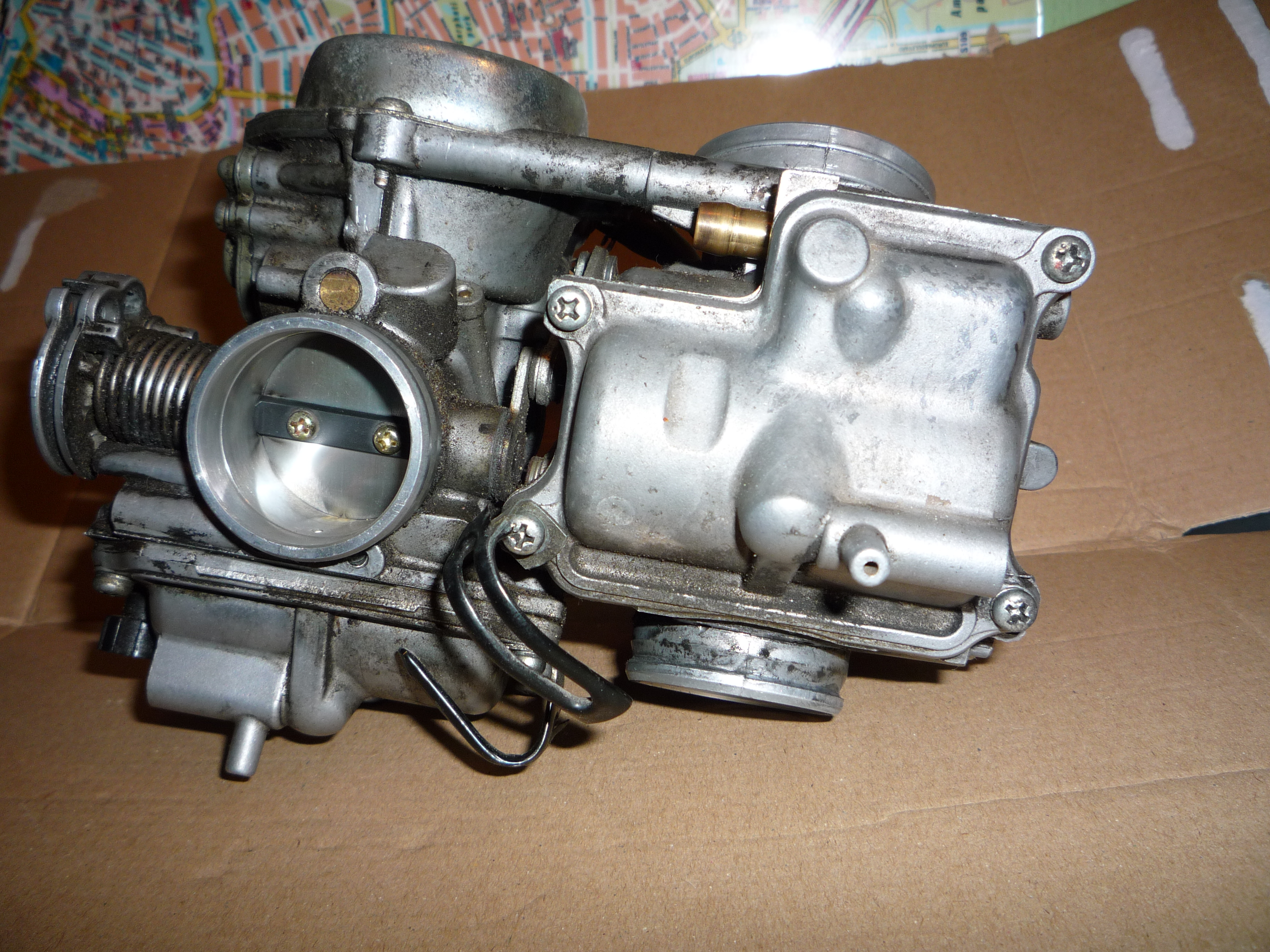 Nu kun je de klemmen om de inlaatrubbers losdraaien en de carburateurs eruit trekken. Gaat even een beetje rottig maar met wat heen en weer wrikken kom je er wel. Dan de carburateurs een kwartslag draaien en tussen het frame uit trekken (Ook dit is ff kloten maar met een goede kop koffie en friemelen kom je er wel ;D ).