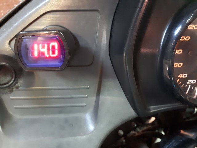 Warm gedraaid zakt de accuspanning weg, stationair rond 13.1 volt, met beetje gas 13.4 volt.