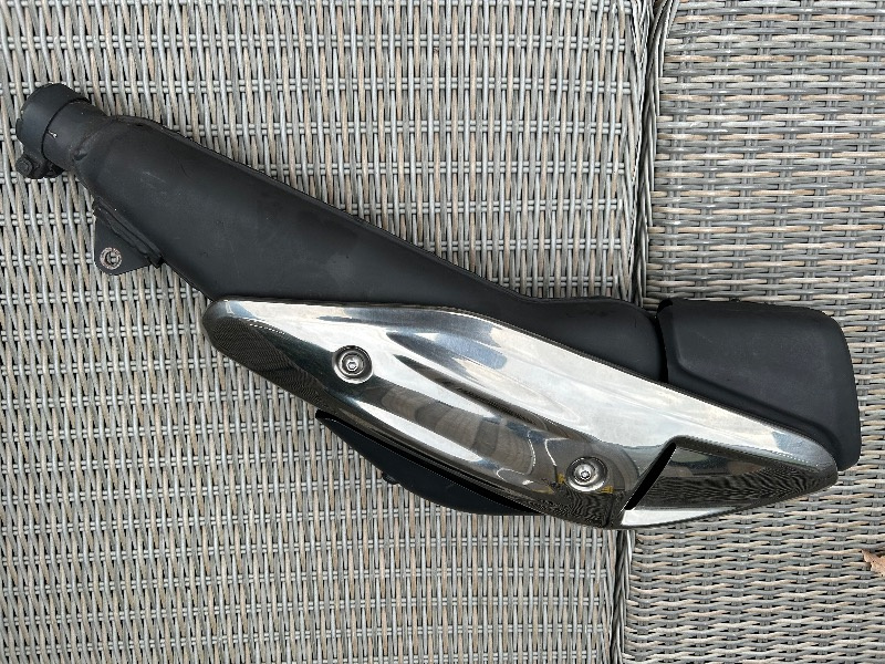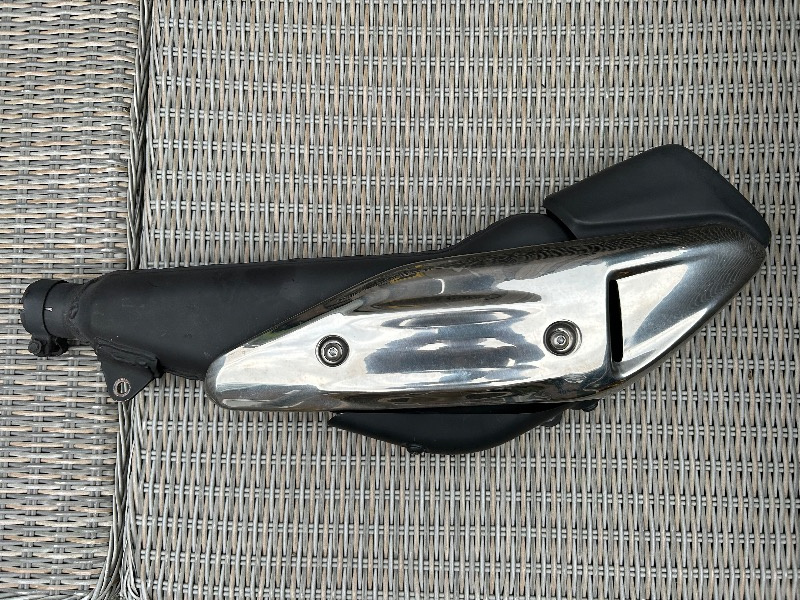 Te koop. Uitlaat demper XL700 compleet. Dus met beschermplaat. Bij aankoop motor in 2012 direct vervangen door andere demper. Dus eigenlijk nog nieuw.