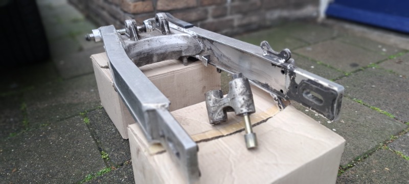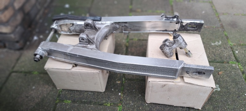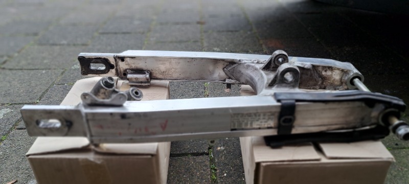 Mooie alu achterbrug om in Transalp 600 te monteren. Linkblok zit erbij, assen niet.